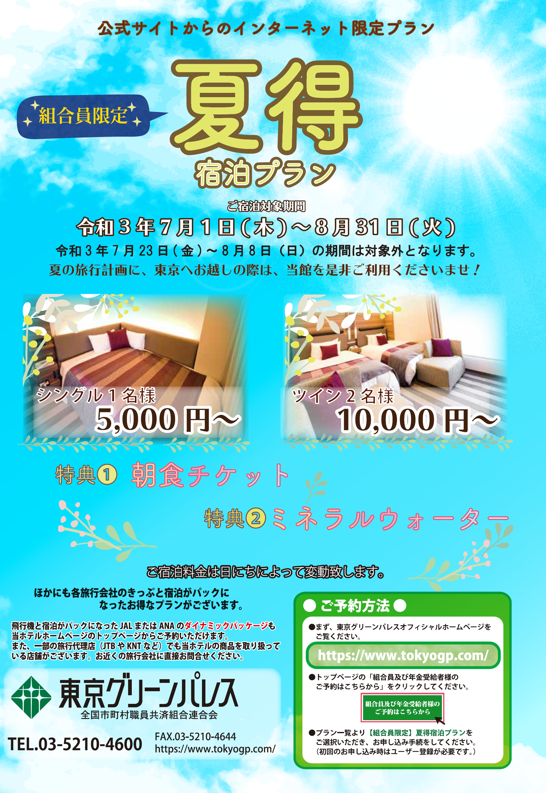 東京グリーンパレス 組合員限定『夏得 宿泊プラン』